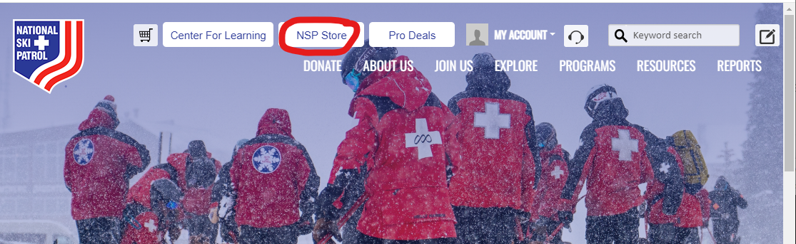 We recommend that you first try logging in to the main National Ski Patrol website at www.nsp.org. Once you have logged in, you should see the white button at the top of the screen that says "NSP Store". If you click that button, you will be logged in to the store website automatically.